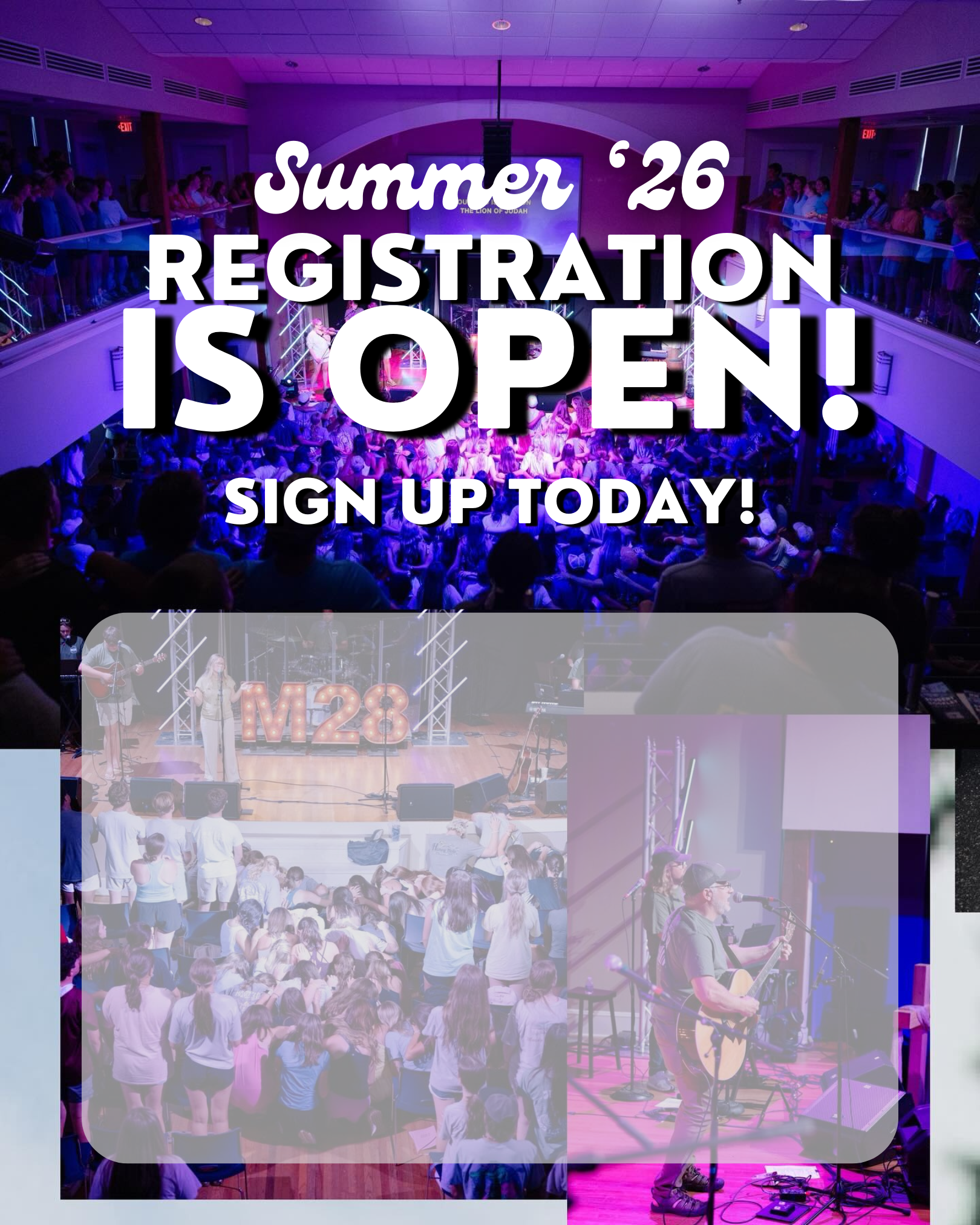 To help serve you with registration, signups, and promoting your trip to camp this summer, we have included some graphics for you to use in your church. If you see a graphic posted on our socials, you are more than welcome to grab those for your use as well. (Please note that all material is copyrighted and is licensed to you for use in your local church setting only.)